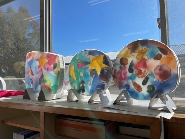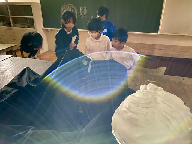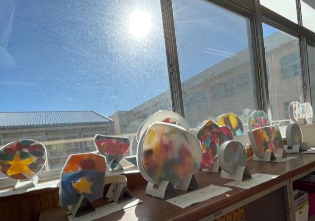 今日はあいにくの天気でしたので、水曜日の晴天の時に撮影した。3年生の図工の作品を紹介します(*^^*)