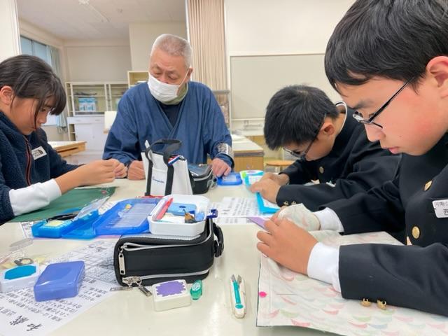 ものづくりマイスターの方たちにティッシュケースづくりを教えていただきました。