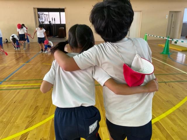 体育の時間には肩を組み、2人3脚に励むシーンを見つけました( ˘⊖˘)