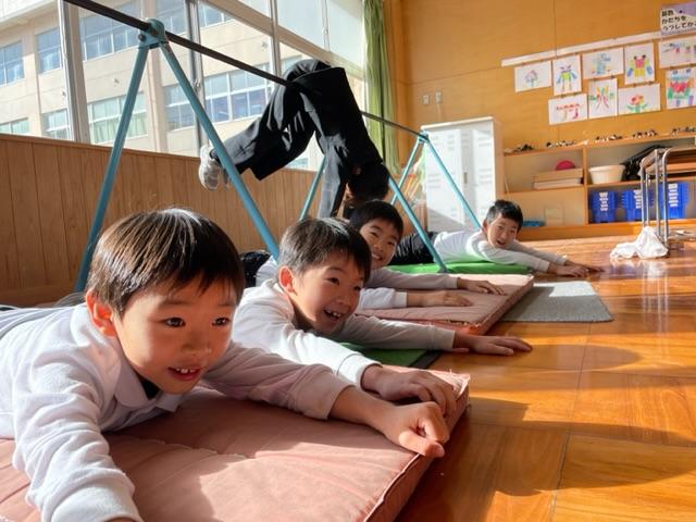「体操で表彰状をもらいました!」って校長室に報告に来てくれました。さらに、たくさんのクラスメイトも入ってきてみんなで祝福しました。