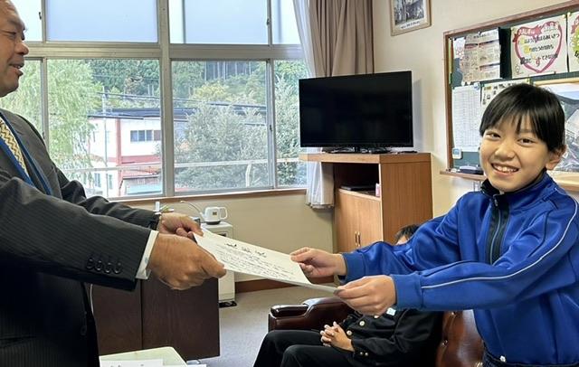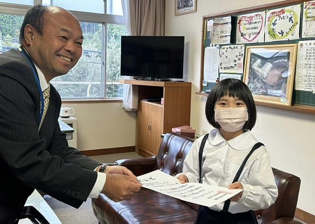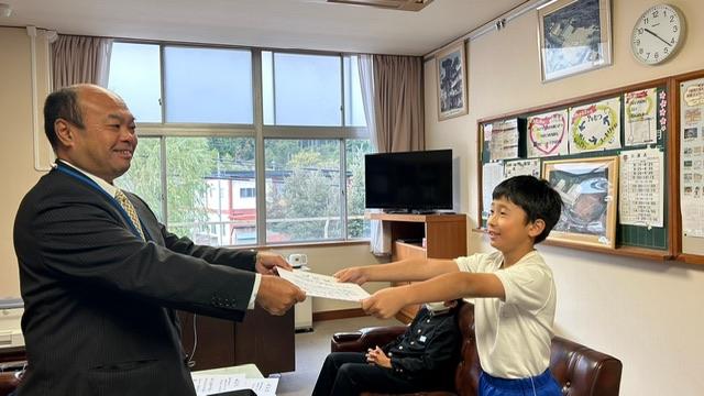 2023年11月22日 22時36分「体操で表彰状をもらいました!」って校長室に報告に来てくれました。さらに、たくさんのクラスメイトも入ってきてみんなで祝福しました。