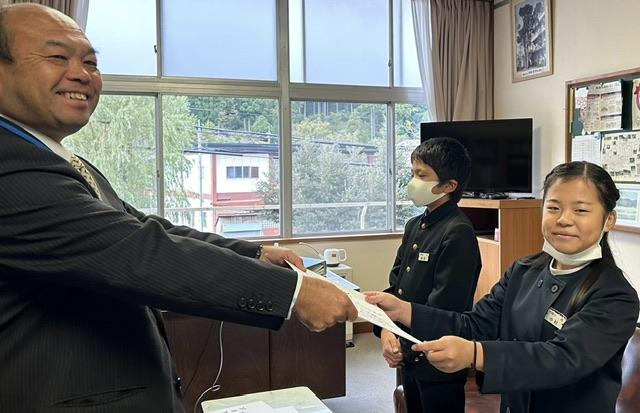 科学作品コンクールの表彰状が届き、校長先生から渡されました。