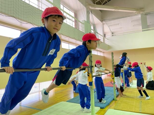 上の学年の子が下の学年の子に鉄棒の技を教えているシーンを見かけました(ӦvӦ。)