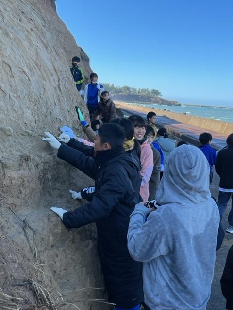 地層の観察も、波に注意しながらがんばりました"٩(ー̀ꇴー́)