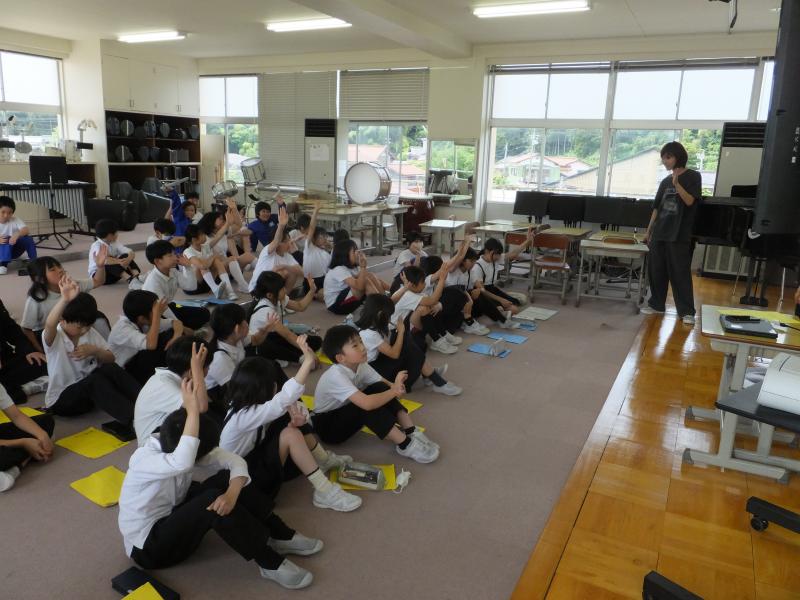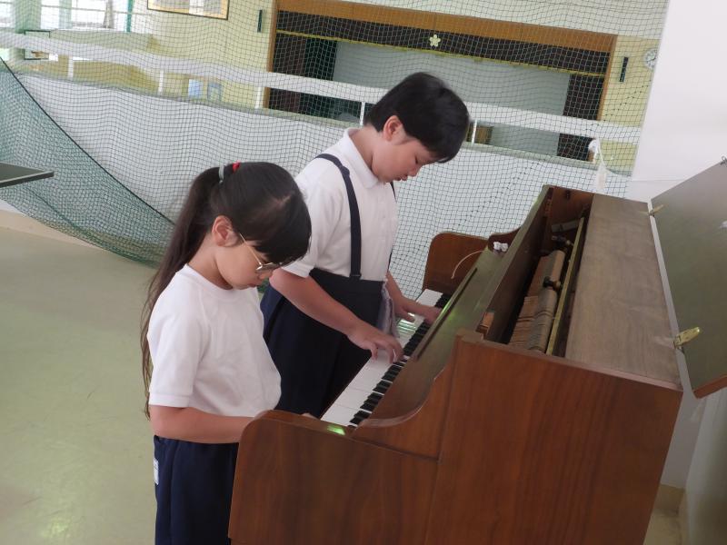 音楽室を覗くと、3,4年生が音楽会に向けて合同練習を行っていました。