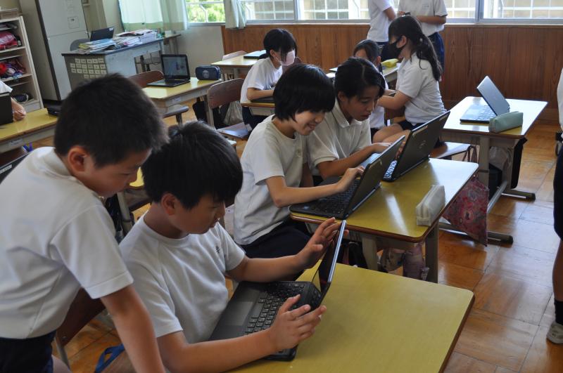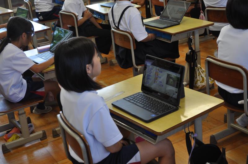 どの学年も楽しく学んでいました。「校長先生、見て!見て!」自分の作ったプレゼンを紹介してくれる4年生!