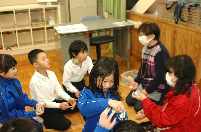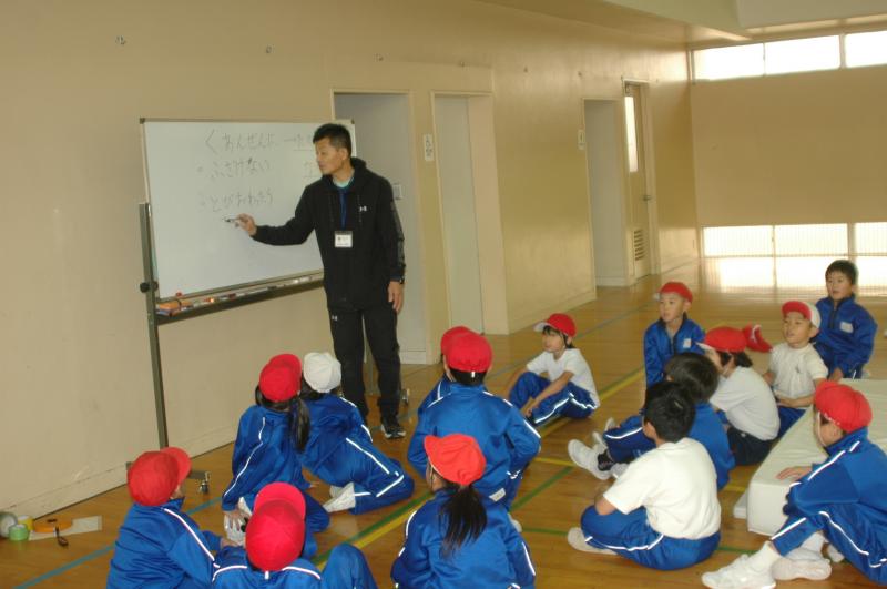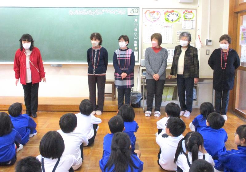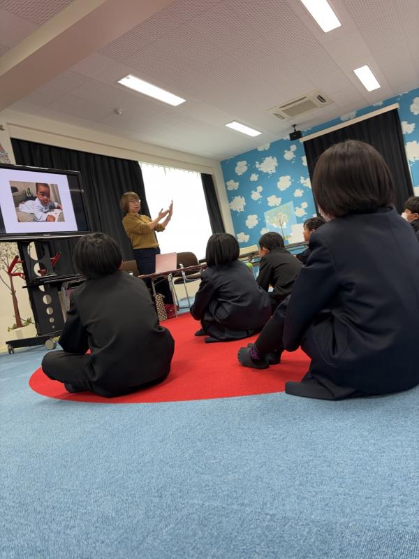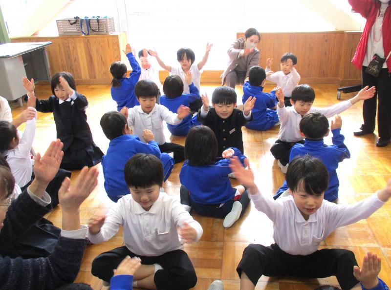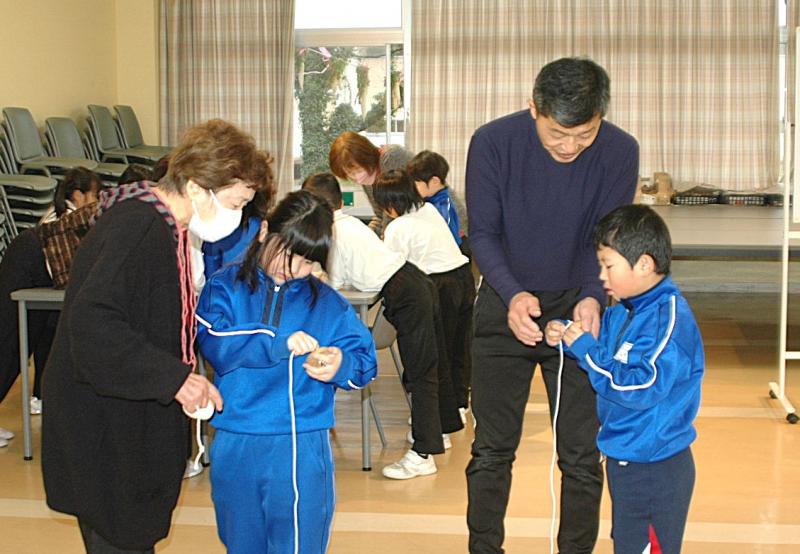 季節に合った手遊び歌「もちつきぺったん」をみんなで楽しみ、「お手玉・こま・あやとり・おはじき」を教えてもらいました。「校長先生!見て!見て!」教えてもらった技?できるようになったことをい~ぱいお話しながら見せてくれました!