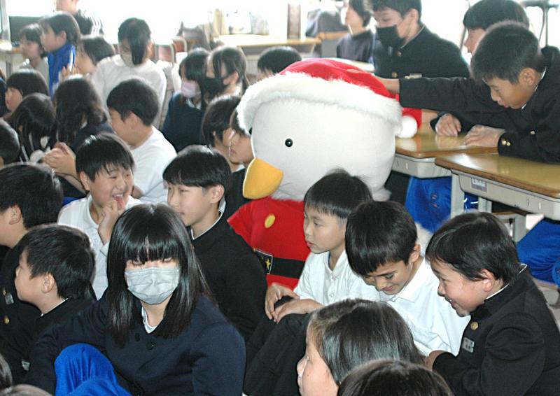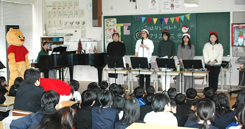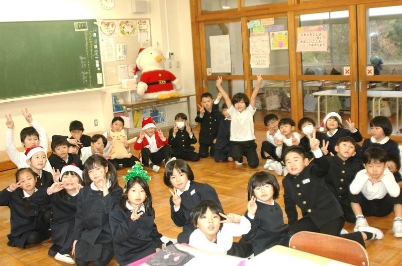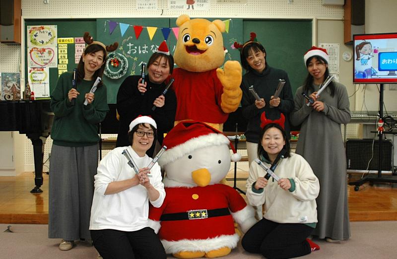 12月18日…教育支援員の先生が「校長先生!1,2年生でクリスマス会するので、お借りしてもいいですか~」笑 大きな★★★サンタとチャチャマルが参加!
