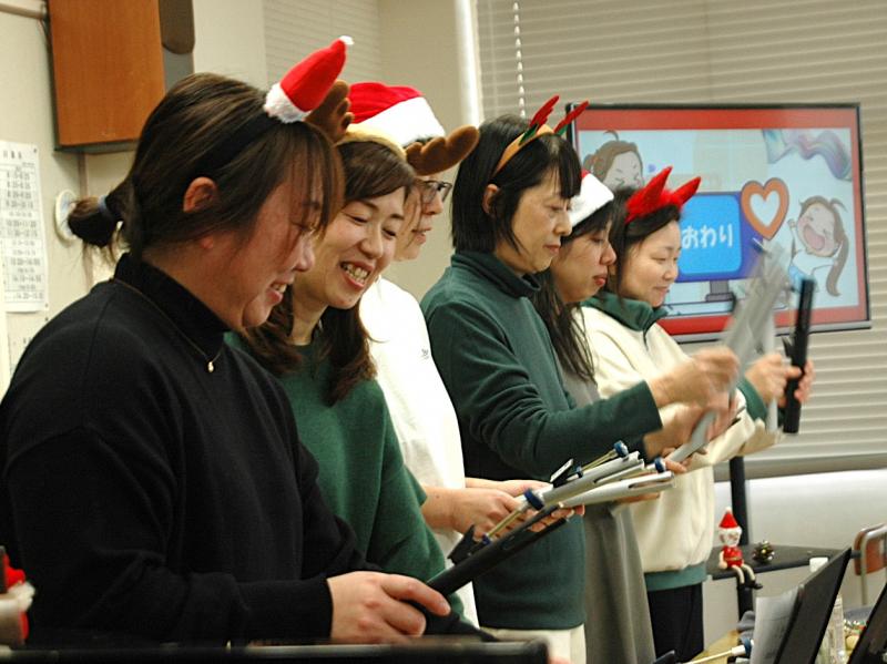クリスマスソングのピアノ演奏が流れる中、子ども達は嬉しそうに音楽室へ!
