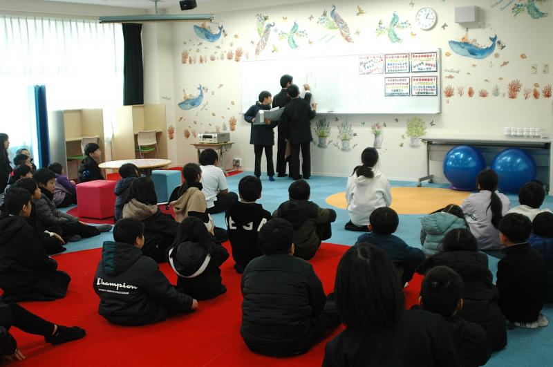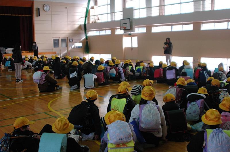 12月20日(金)5限目は各町に分かれての分団会!冬休みのきまりや危険場所について…雪の日の登下校の確認を行いました。