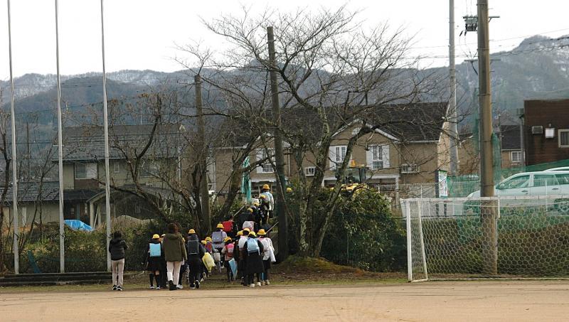 「雪が降ったら歩道を歩けないから運動場から帰るんです!」と6年生が説明してくれました!最初の道を作る班が大変なことも話してくれました…。そうなんだ~!