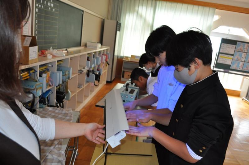 12月4日から養護教諭が各クラスで手洗いの指導に入っています。手洗いチェッカーを使っての手洗い指導!感染症対策は手洗いが一番効果的と言われています。