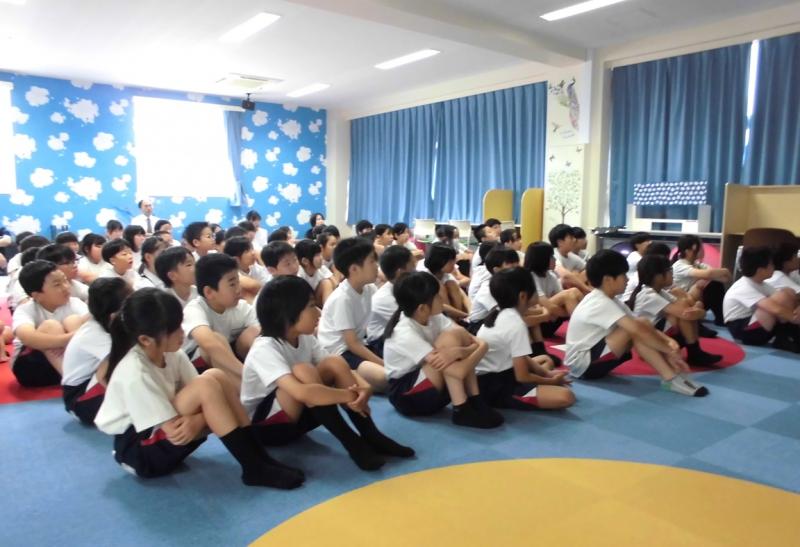今日は平和集会を行いました。私のプレゼン➡6年生実行委員による読み聞かせ