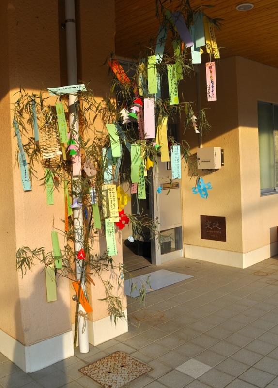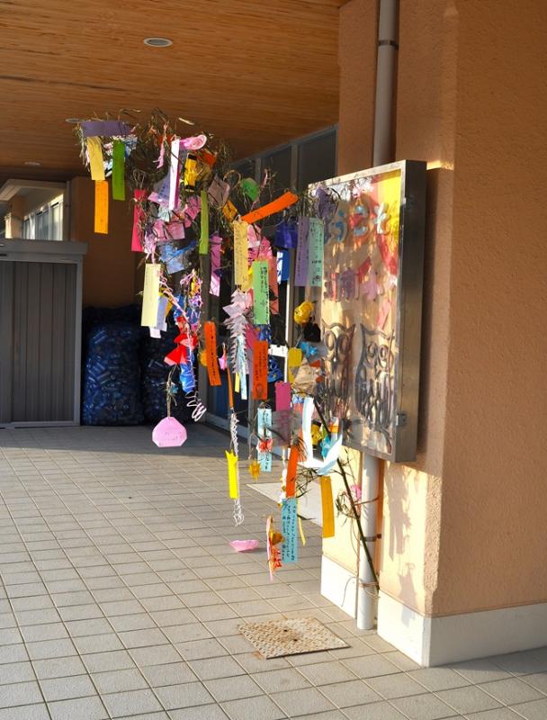 全校みんなで短冊に願い事を~飾りは低学年が中心に作ってくれました!