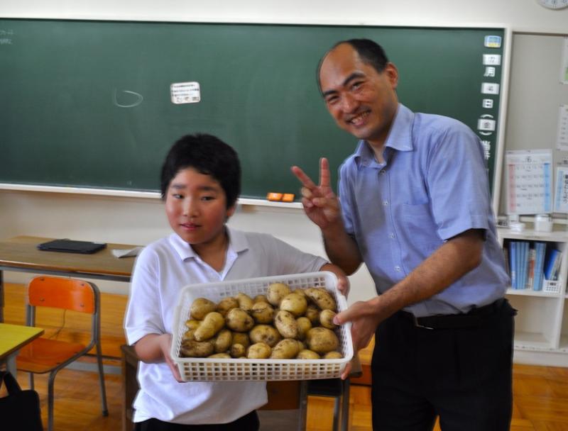 校長室まで収穫したじゃがいもを見せにきてくれました!