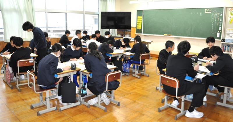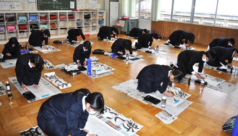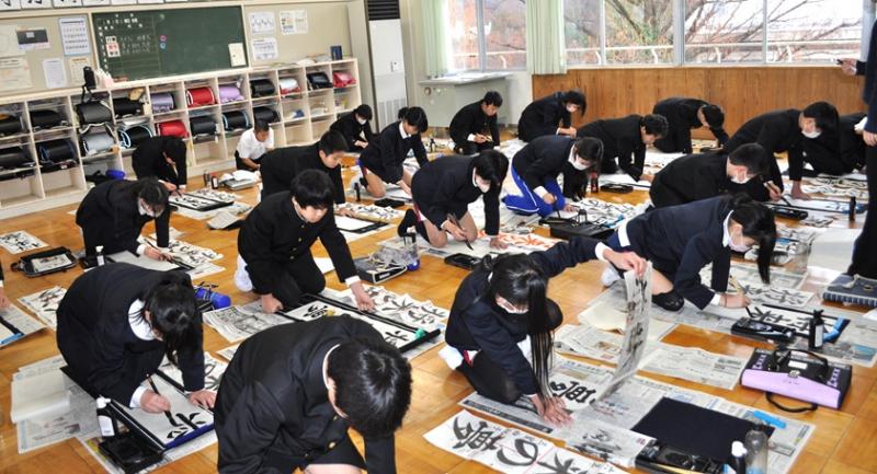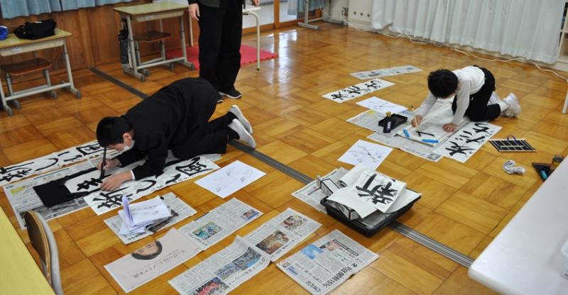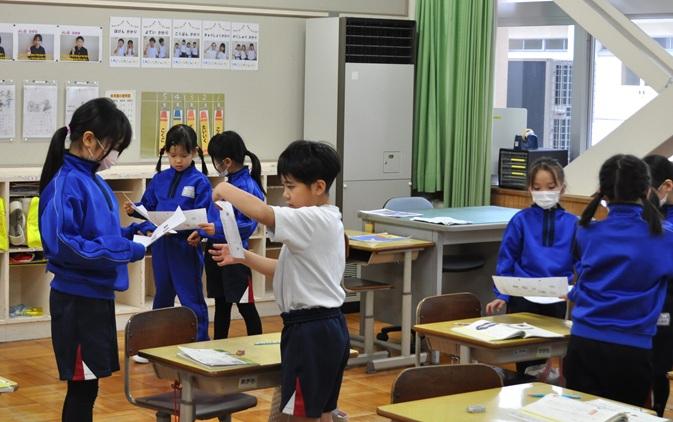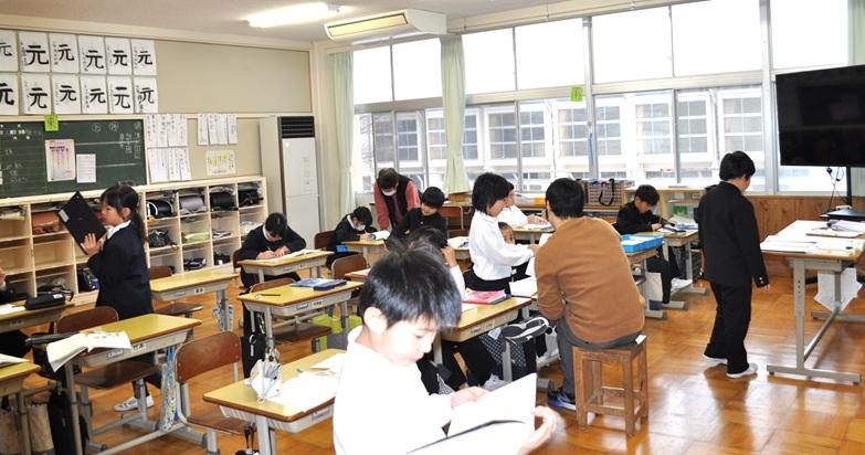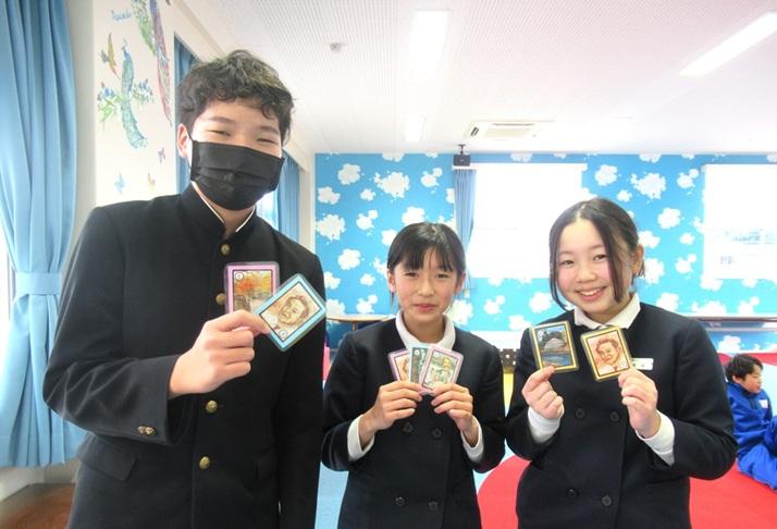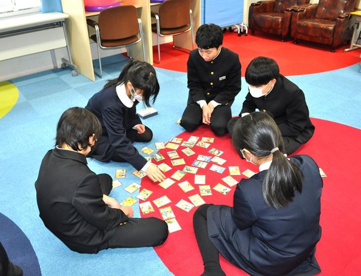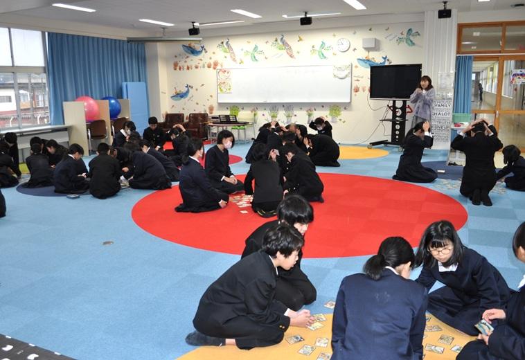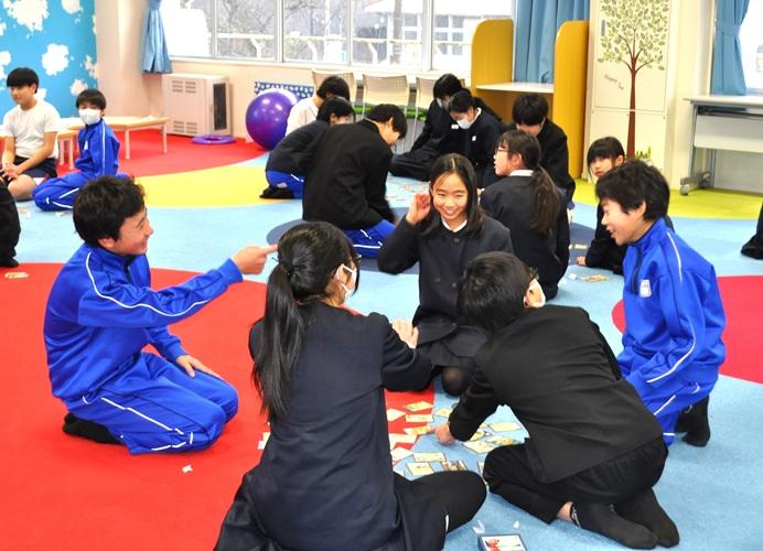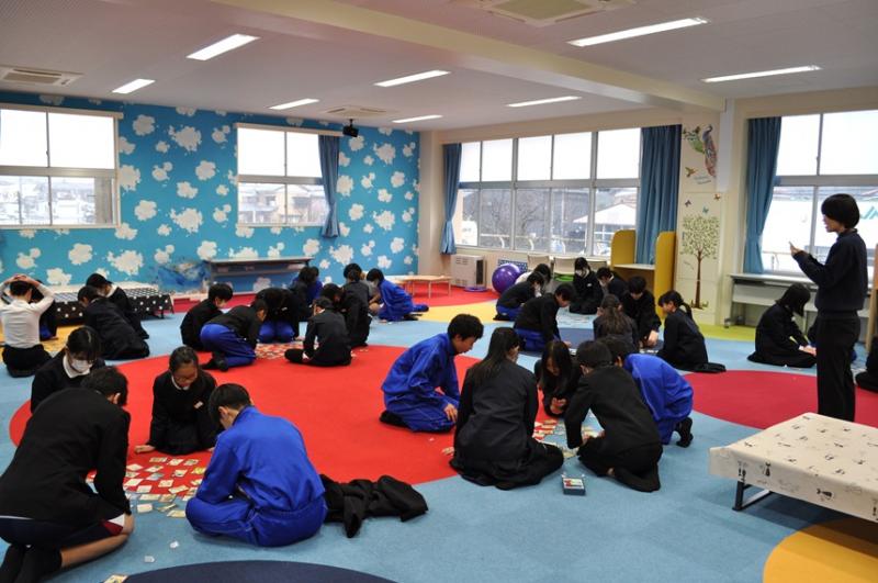 1月8日3時間目に、5,6年生が縦割り班で「郷土カルタ大会」を行っていました。