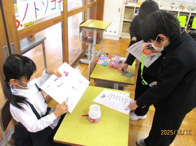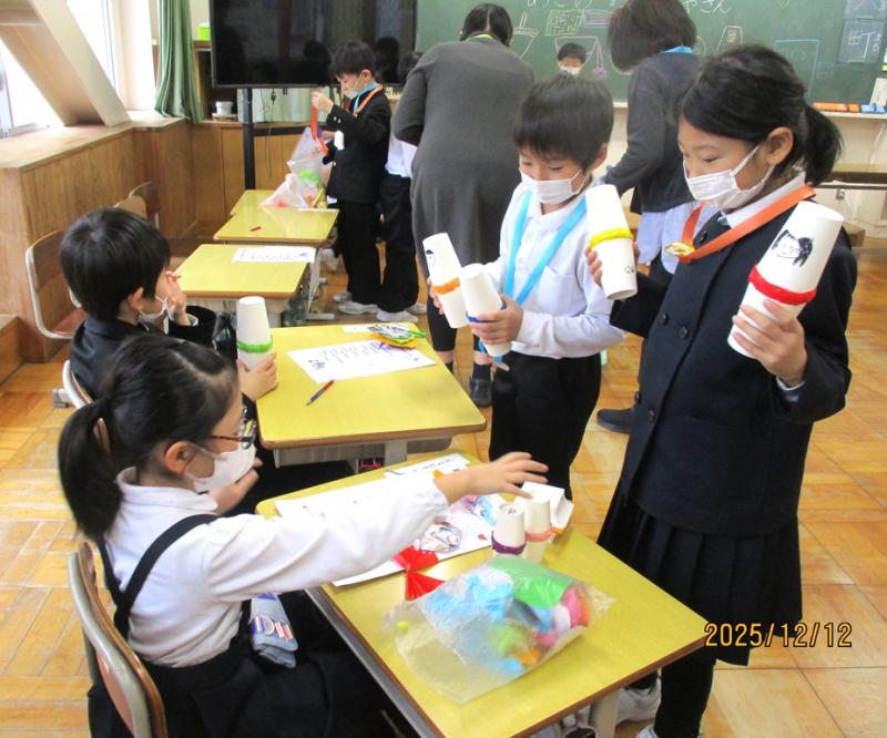 12月12日に1年生がみんなで「秋のおもちゃやさんに来てください!」と誘いに校長室まで来てくれました!