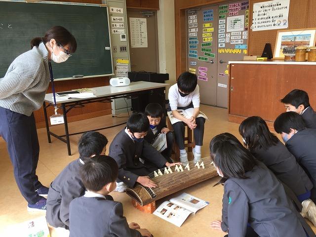鑑賞や演奏体験ということで、校内の琴に堪能な先生にゲストティーチャーとしてきてもらいました。