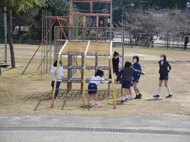 昼休みには、低中高学年そろって外で遊んでいました。