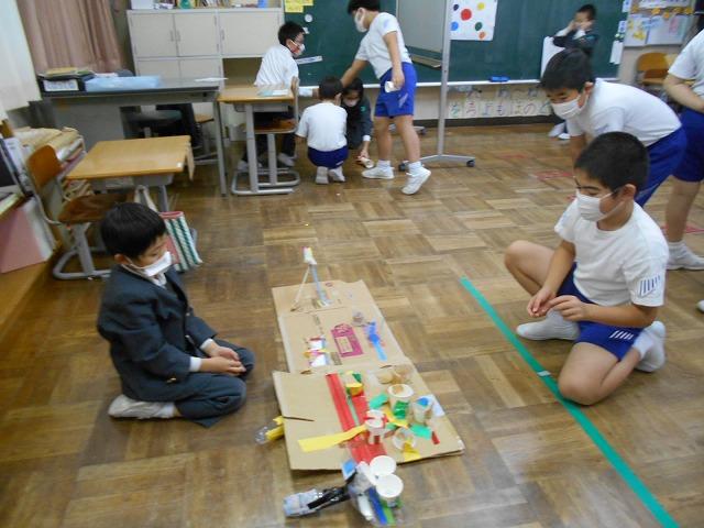 1・2年生が生活科の時間に作ったおもちゃで、おもちゃランドを開催しました。