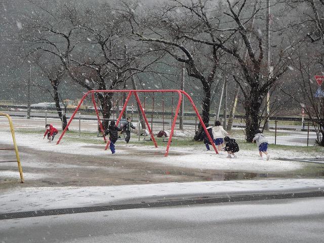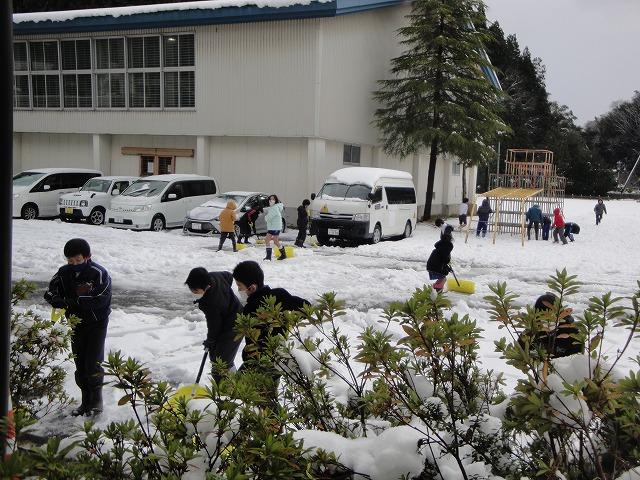 お昼も自主的に、休み時間返上で3・4年生が雪かきをしてくれました。