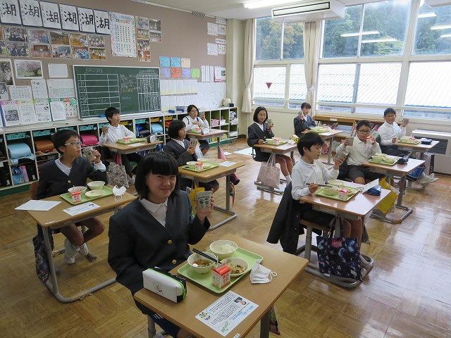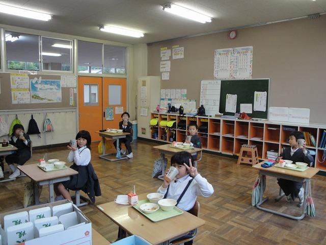 輪島市と萩市姉妹都市30周年を記念して、萩市から萩焼カップを全児童にいただきました。