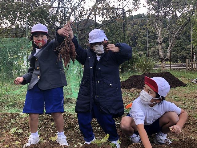 国語の「おおきなかぶ」を思い出し、「うんとこしょ、どっこいしょ。」と言いながら掘りました。