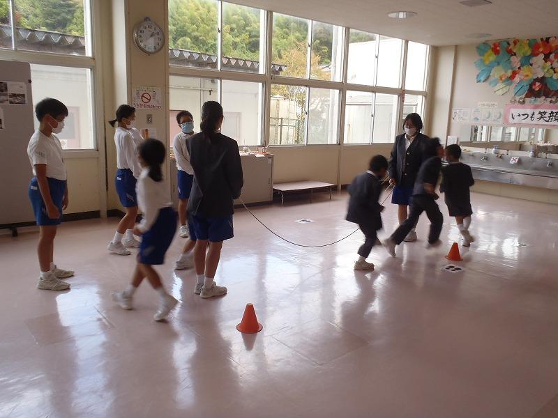 6年生が国語の話し合い学習で1・2年生に8の字跳びを教えてあげることに決めました。