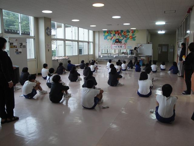 気象庁の緊急地震速報に合わせて、1年生も避難訓練をしました。