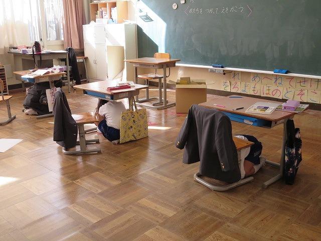 2020年11月5日 17時10分気象庁の緊急地震速報に合わせて、1年生も避難訓練をしました。