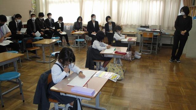 市内の先生方が1年生の授業を参観においでました。