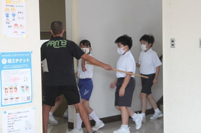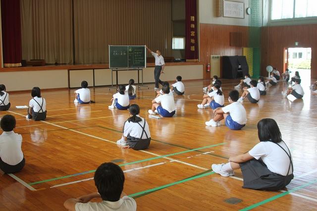 ところが、大変暑い日になり、熱中症が心配です。そこで、急遽、体育館での実践になりました。