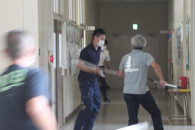 不審者が校内に侵入した場合の避難訓練をしました。
