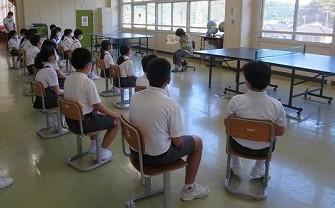子どもたちは静かに体育館に避難できました。