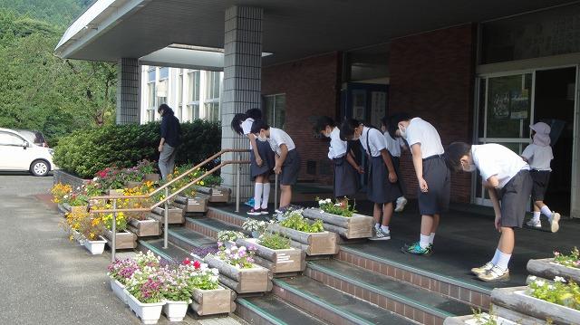 朝早くから登校し、みんなにあいさつをしてくれました。