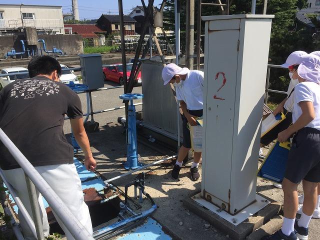 帰りには、サンプルル近くの配水池や姫田の取水口も見学しました。