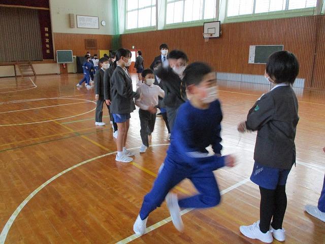 全校縦割り8の字跳びが始まりました。