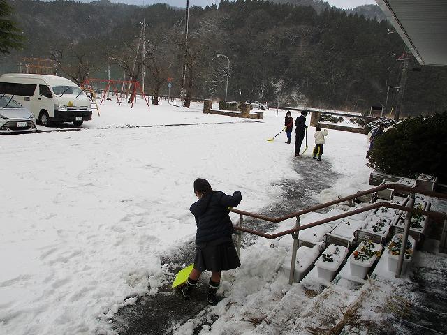 登校した児童の中から、自発的に除雪を手伝う人が外に出てきてくれました。