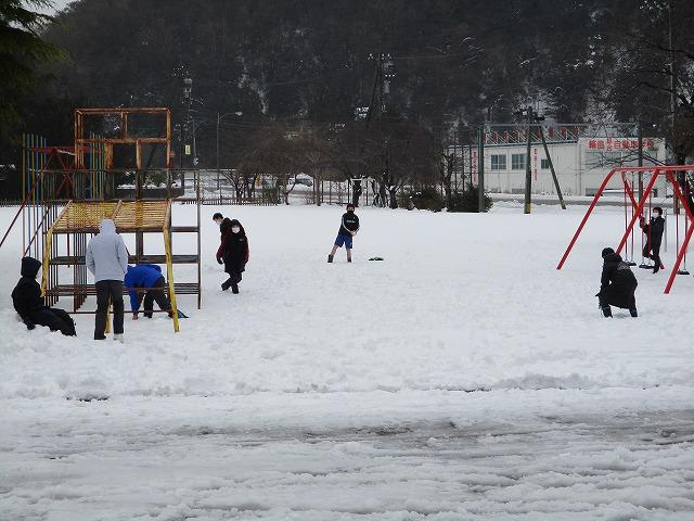 昼休みには、高学年の男子が中心となって雪遊びをしていました。
