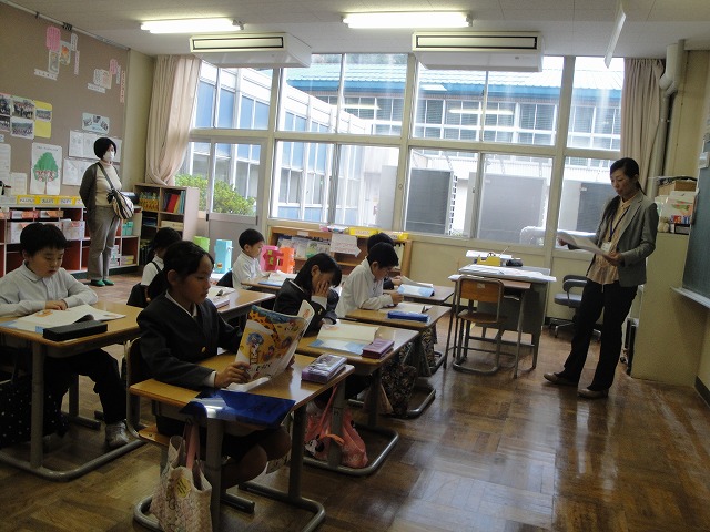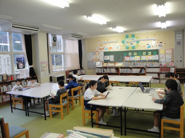 木曜日の朝は、「縦割り読書」や級外職員による「校内読み聞かせ」をしています。