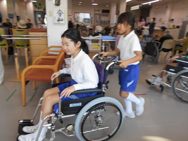 そして、車いすに乗ったり、押したりの体験もさせていただきました。