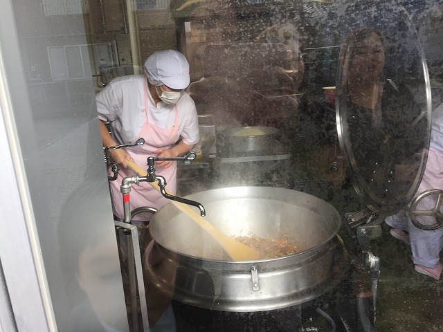 大きな釜や大きなじゃもじ…。とってもびっくりしました。420人分作っているそうです。