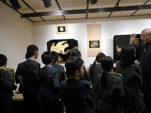 3年生は社会科の輪島塗工場見学、4年生は輪島塗に関する作品作りのために、輪島塗工房を見学させていただきました。