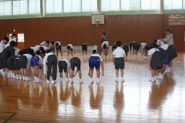 歌う前には、体をほぐして発声に入ります。「海は ぼくらの生命」という歌を歌います。