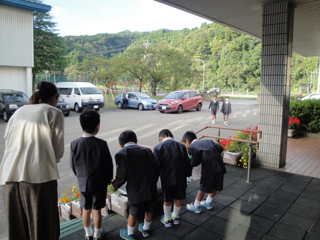 先生に呼ばれなくても、進んで玄関に出て挨拶を始めたり、「あいさつ運動、楽しい。」という声も聞こえたり、頼もしい1年生です。