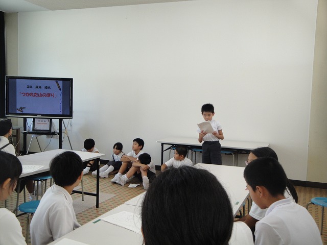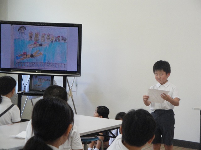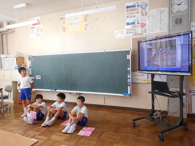 3年生が国語「伝えよう、楽しい学校生活」の学習で、1年生に学校行事について教えてあげました。