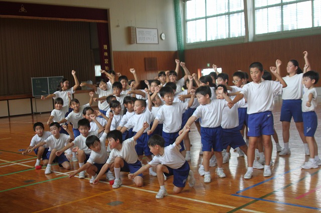 最後に8の字跳びを見ていただき、ほめられて、子ども達は大変喜んでいました。