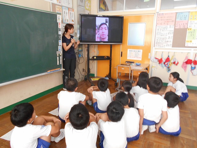 青年海外協力隊としてマダガスカルへ行っている方と、3・4年生が、テレビ電話をつないで国際交流しました。