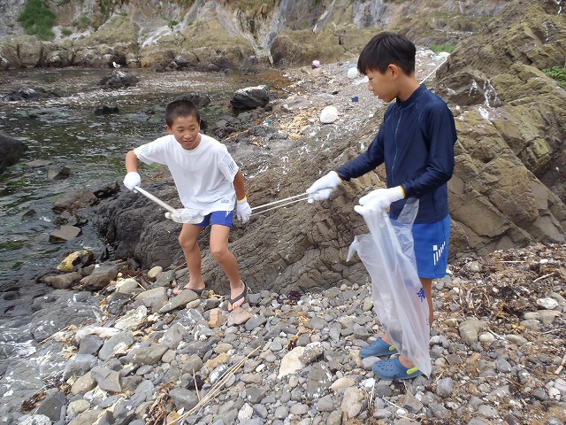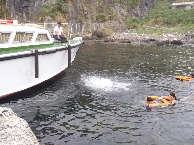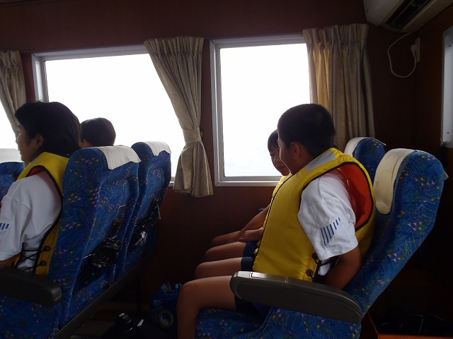 7月29日、心配していた波と風は強くなく、6年生7人が七ツ島の体験学習に出かけました。