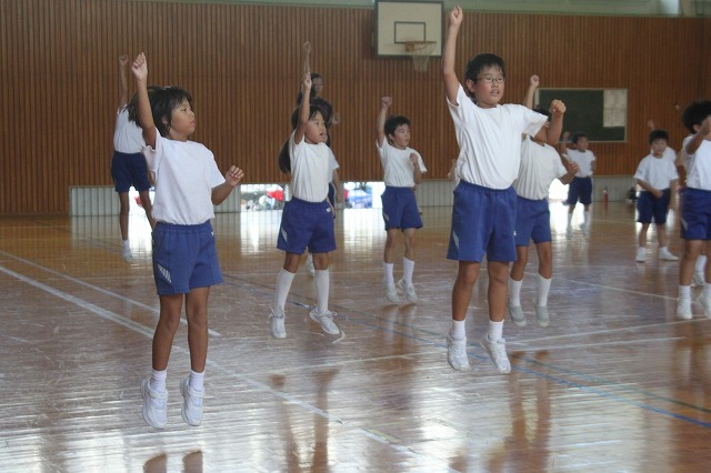 全校で踊る「よさこい」の練習です。